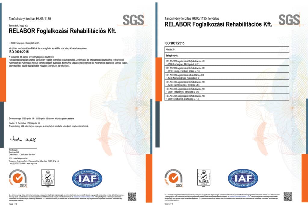 A modern szervezetek számára a minőségpolitika kialakítása és következetes alkalmazása elengedhetetlen a versenyképesség megőrzéséhez és a fenntartható működéshez. Ennek bizonyítékaként már 1999-ben sikeresen bevezettük és auditáltattuk az MSZ EN ISO 9002:1996 szabvány szerinti minőségirányítási rendszert. A folyamatos fejlődés és az új szabványokhoz való igazodás jegyében rendszerünket átdolgoztuk és jelenleg az MSZ EN ISO 9001:2015 és MSZ EN ISO 14001:2015 rendszer követelményei szerint működünk.