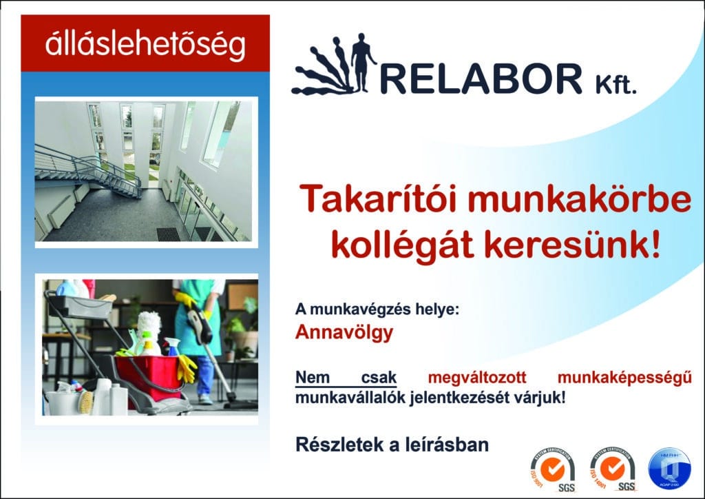 Takarító munkatársat keresünk irodák, szociális helyiségek takarítására!